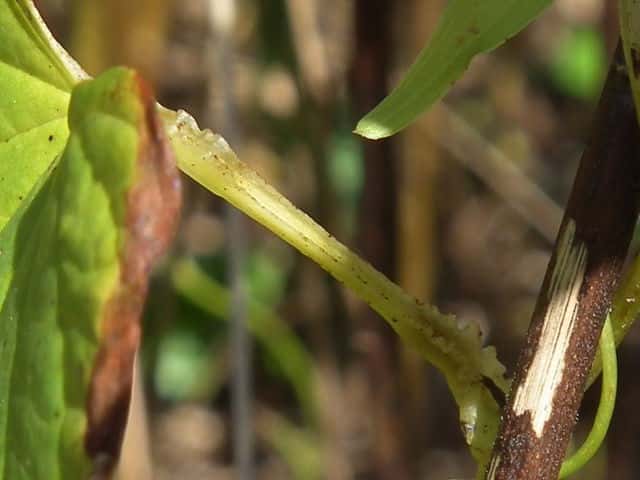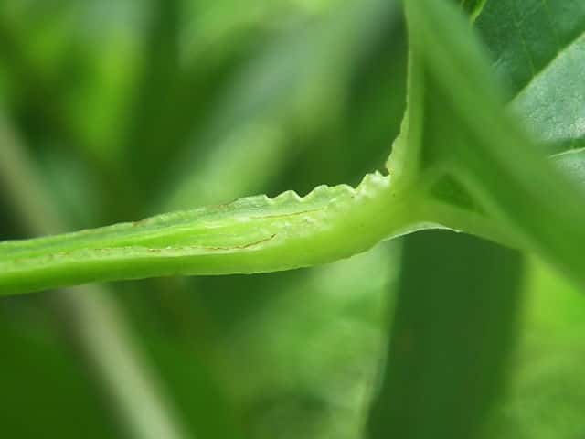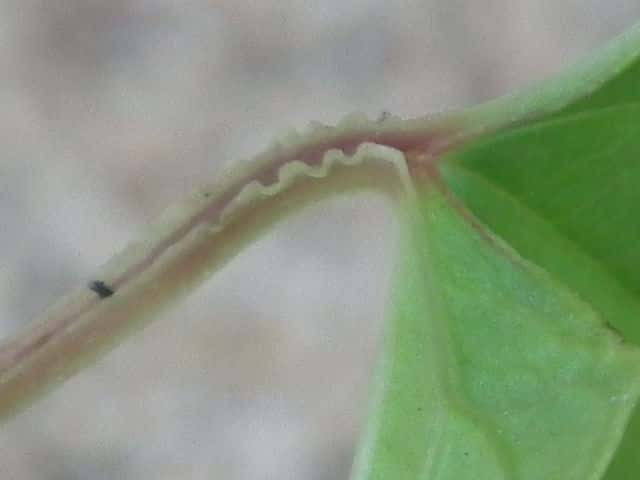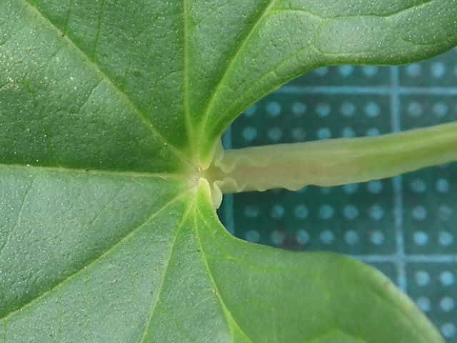 | ▼2013年7月17日 八雲 | ▼葉柄の先端に縮れたひれがある。 | ▼葉柄の基部に縮れたひれがある。 |