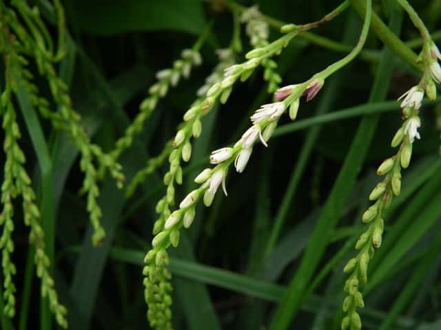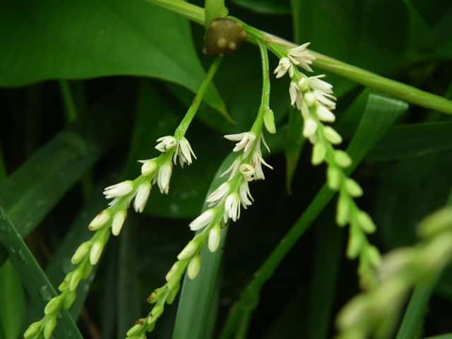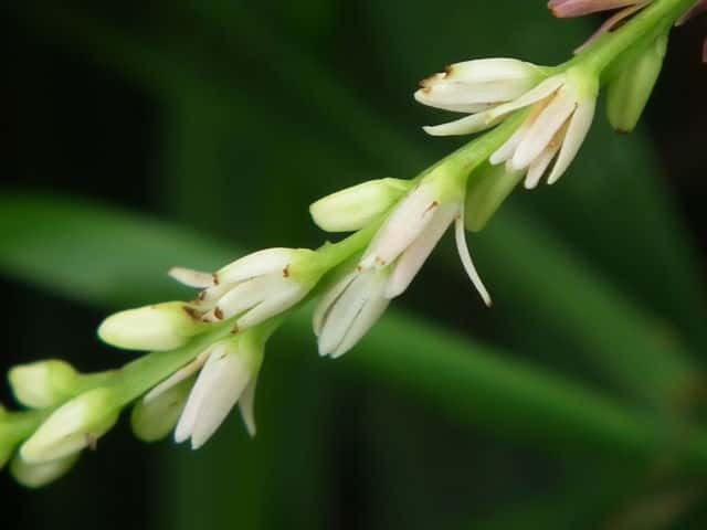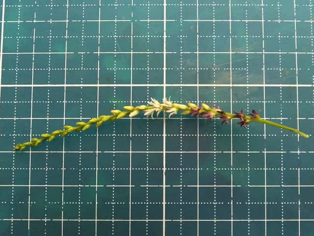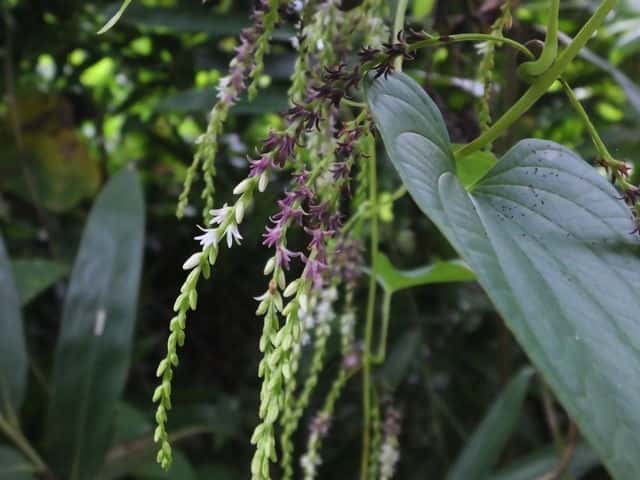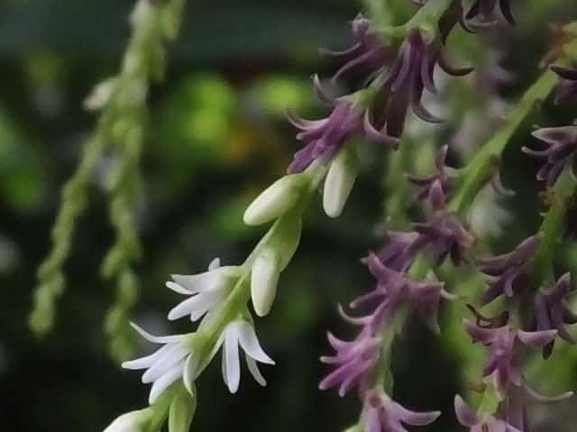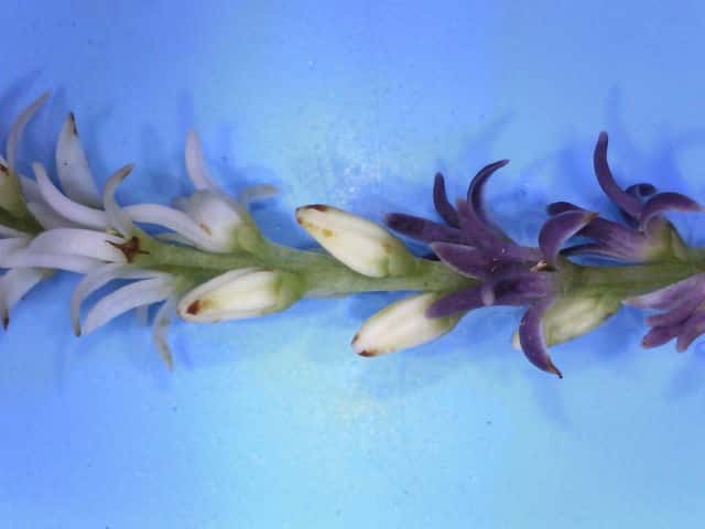 | ▼花序は長さ約7.5cm。 | ▼花は白色〜紫色に変化する。 | |