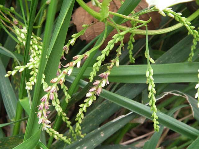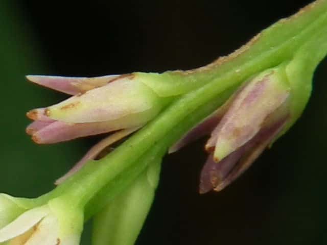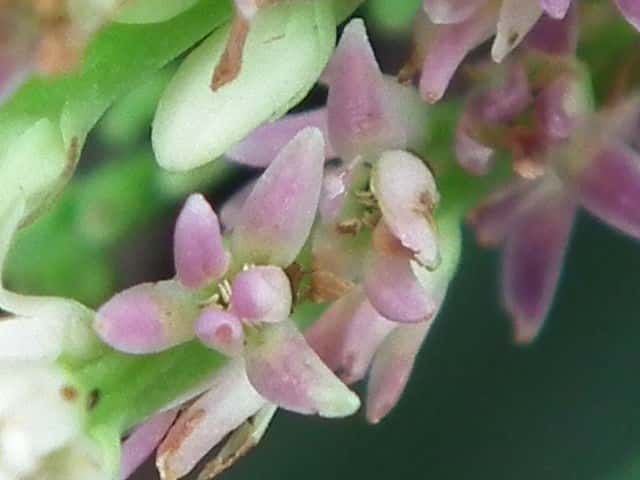 | ▼2012年9月20日 雄花 玉湯 | ▼花が白色から紫色になる。 | ▼花は長さ約4mm。 |