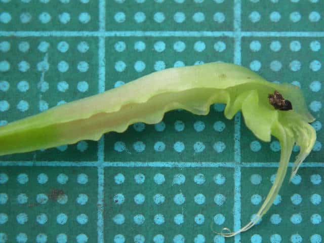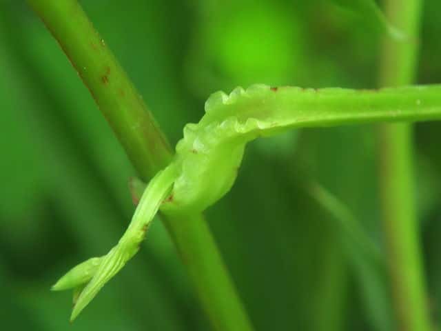| ▼葉柄の上端にちぢれたひれがある。 | ||