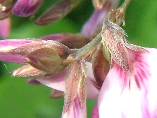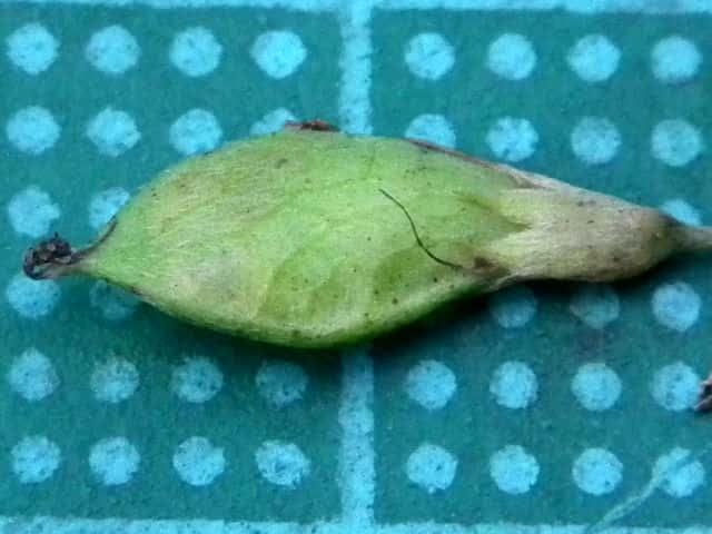 | ▼果実 | ▼小葉の先端はとがる。 | ▼葉の表面は伏毛が密生する。 |
