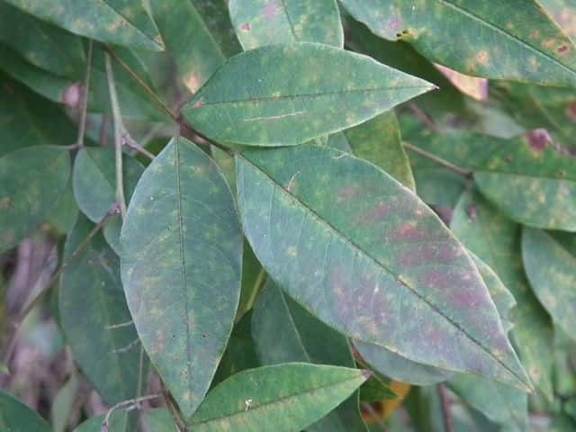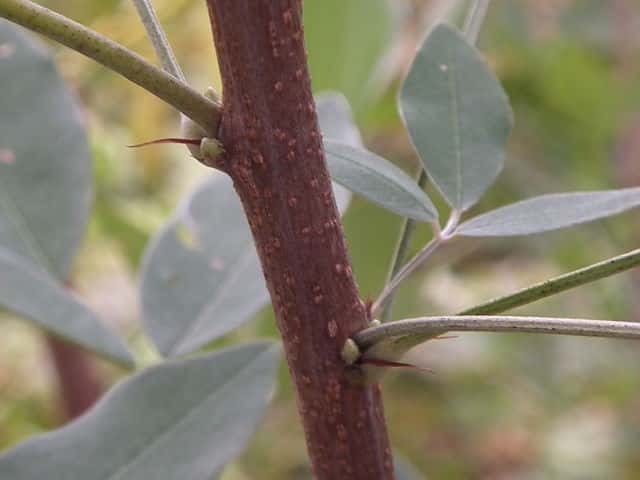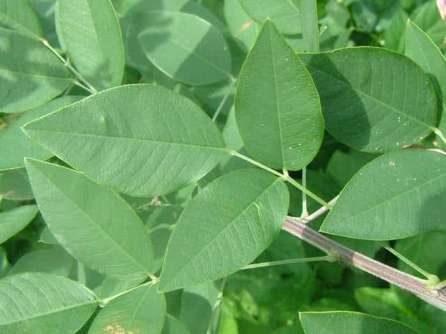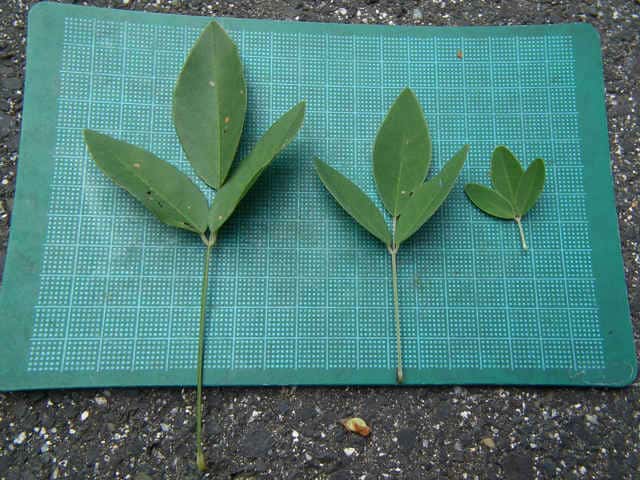| ▼枝先に小葉の先が丸い葉もある。 | ▼小葉の先が尖るものが多い。 | |