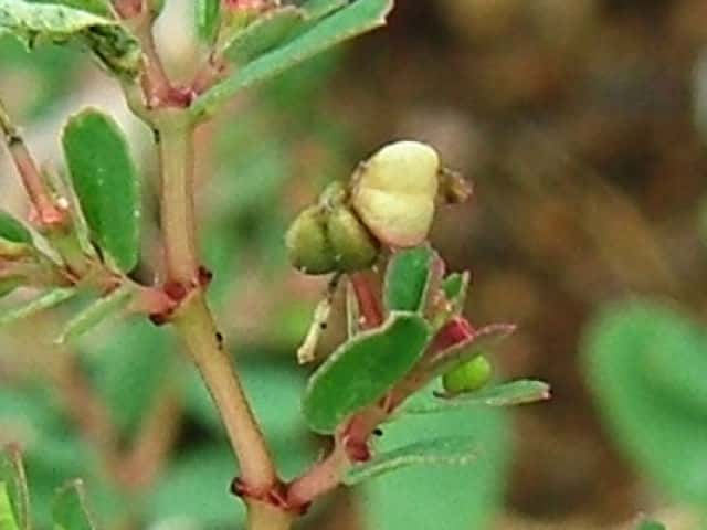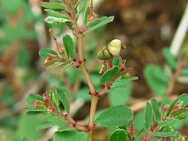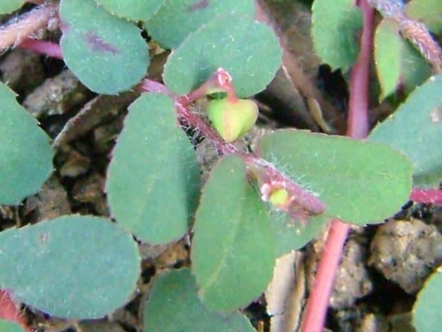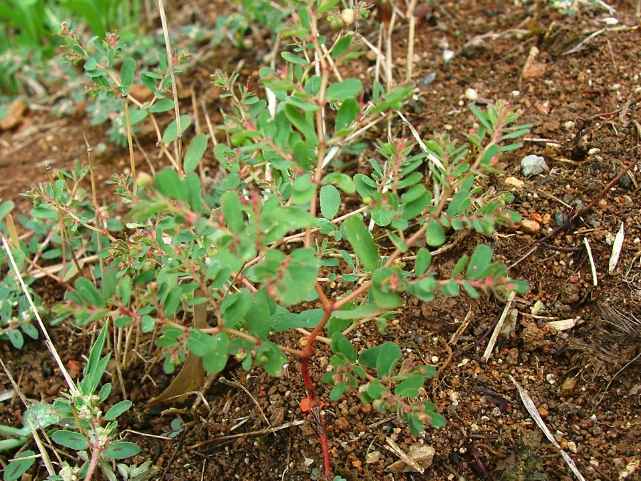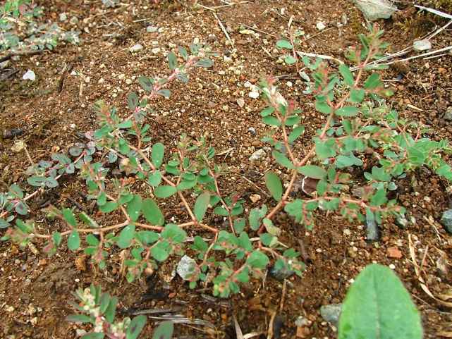 | ▼2004年8月1日 玉湯 ニシキソウは這うか斜上するかであり、立ち上がっているが、茎やさく果に毛がない。 | ||