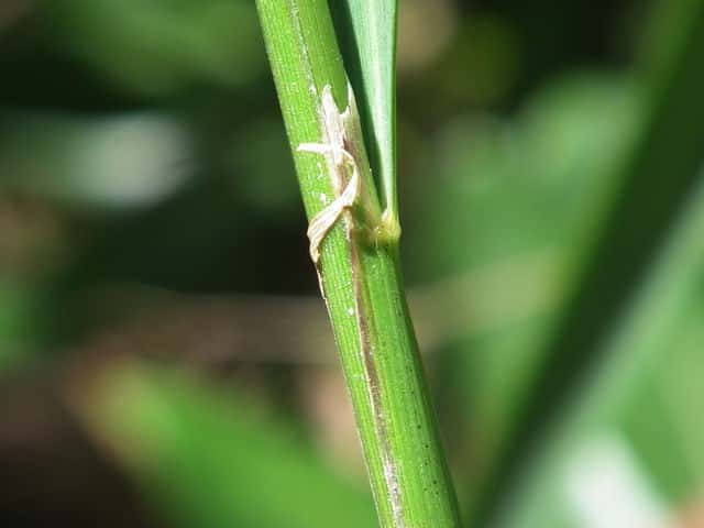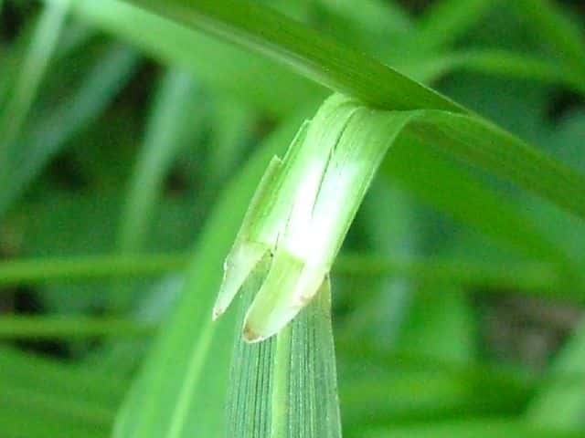 | ▼花序枝には小さな刺がある。 | ▼葉舌は長い。 | |