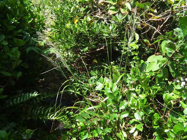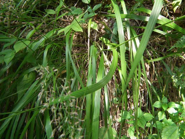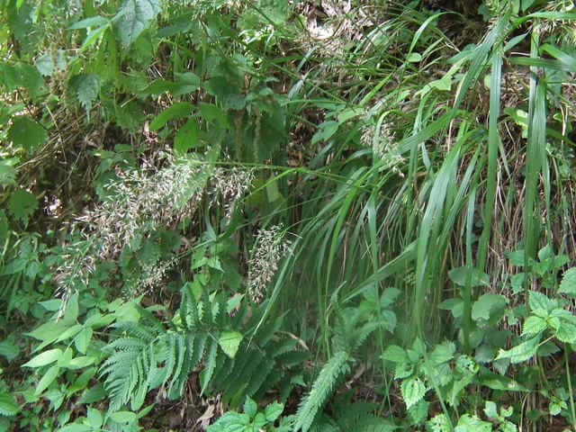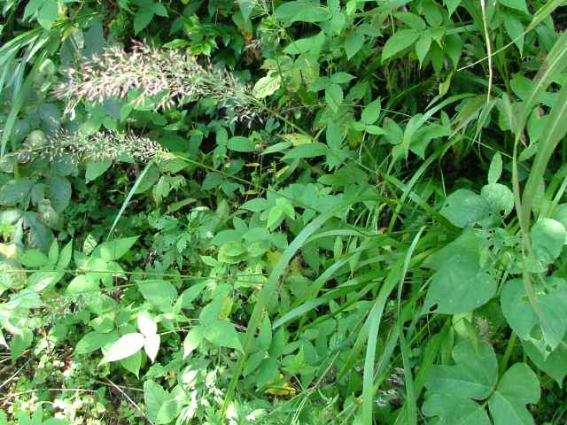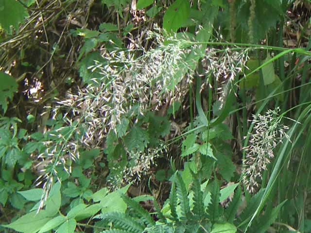| 多年草 北海道〜九州の山地の丘陵地に生育する。根茎と種子で繁殖し、著しく群生する。根茎は短い。茎の基部から短い匍匐根茎を出す。越冬芽は地表にある。茎は叢生し、壮大になる。茎の高さ1〜1.3m。葉は長さ30〜40cm、幅0.5〜1.2cm。葉身は線形。葉舌は長さ5〜6mm。葉鞘は無毛。花序は円錐形で長さ15〜25cm。小穂は長さ4mm、1小花。第1苞穎は長さ5〜6mm、第2包穎は4〜5mm、芒は護穎の基部から出て小穂より著しく長い。果実は乳白色、無光沢、長さ1.8〜2mm。花期は8月。(日本イネ科植物図譜) 学名は、Calamagrostis brachytricha イネ科ノガリヤス属 |