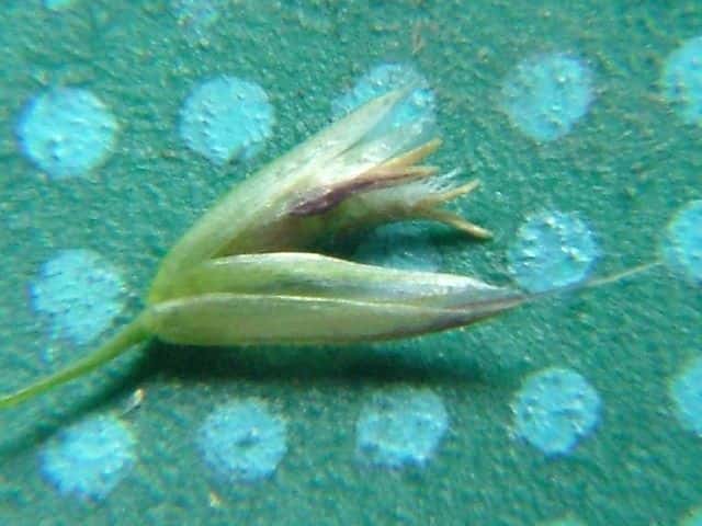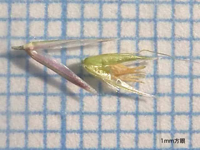 | ▼小穂の中に1小花がある。 | ▼小花の基部に長毛があり、芒が出る。 | ▼小花の護穎と内穎。 |