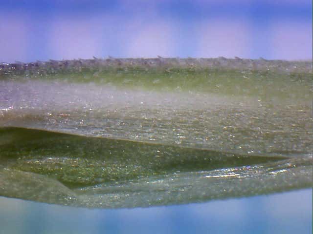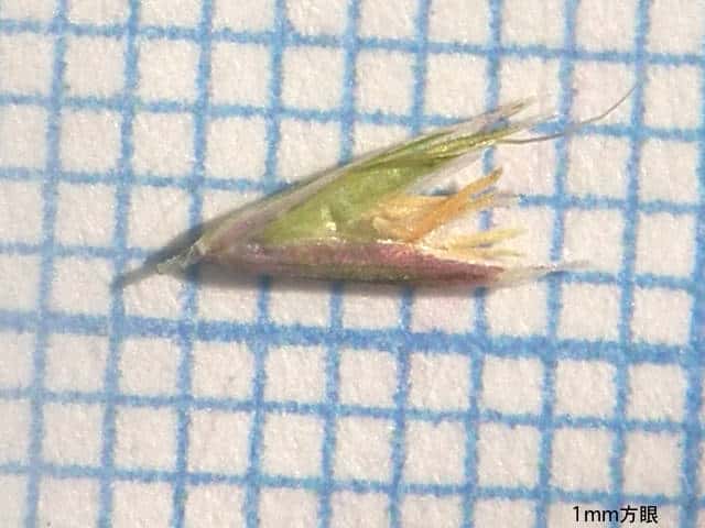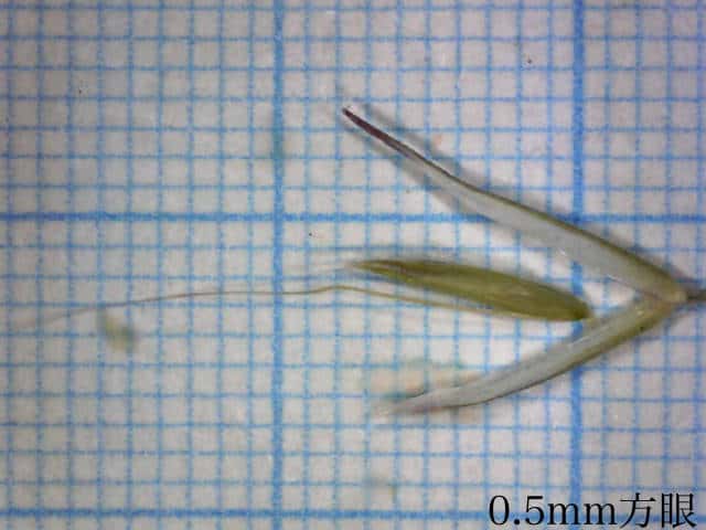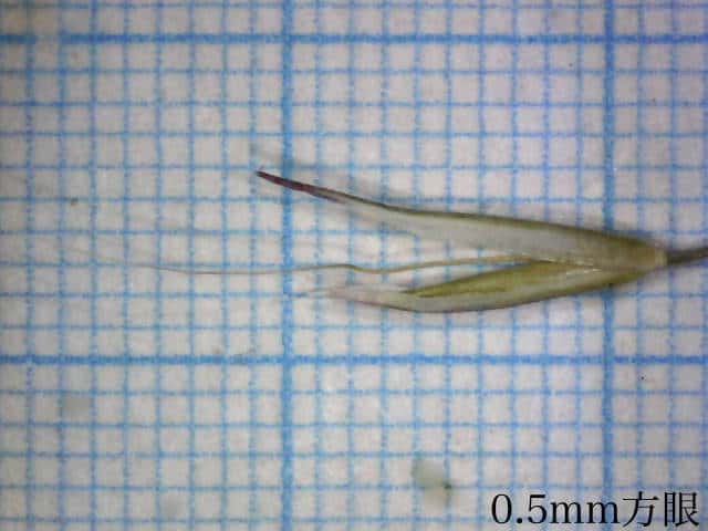 | ▼小花の護穎は長さ約4.7mm。 | ▼小花の基部に環状に長い基毛がある。 | ▼小花の基部の基毛。 |