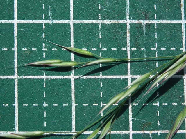 | ▼小穂は長さ約6mm、長い芒が出ている。 | ▼苞穎はほぼ同長、芒は小花の基部から出る。 | ▼苞穎の背に小さな刺がある。 |
