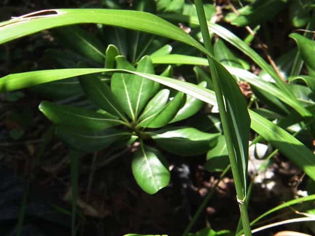 | ▼4本の枝が輪生状に出ている。 | ▼花序は長さ約30cm。 | |