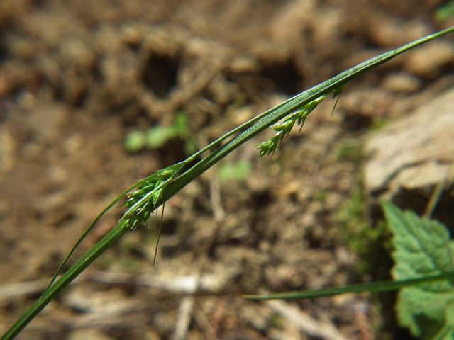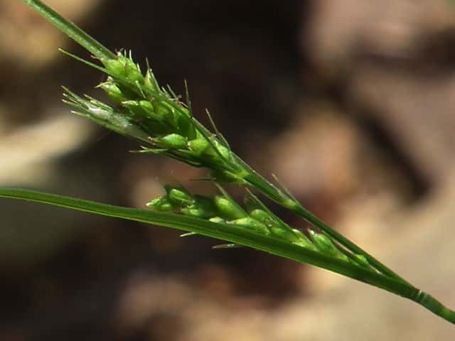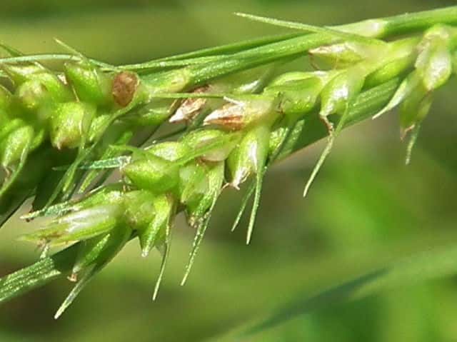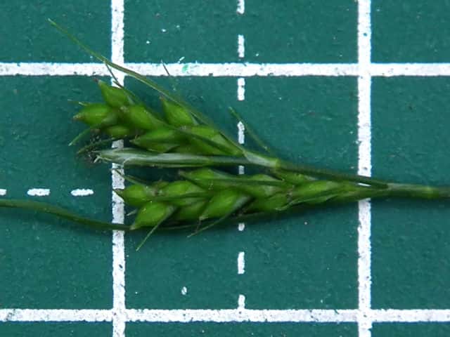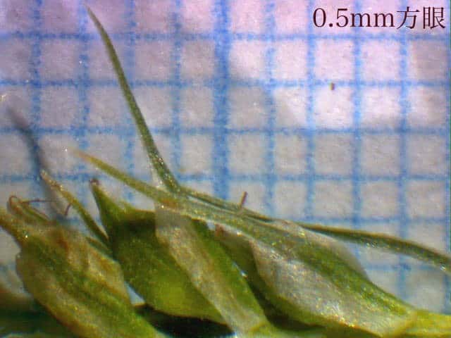 | ▼雄小穂は細く、長さ約5mm、雌小穂は長さ6〜10mm。 | ||