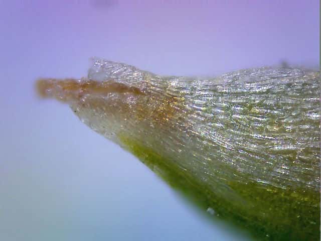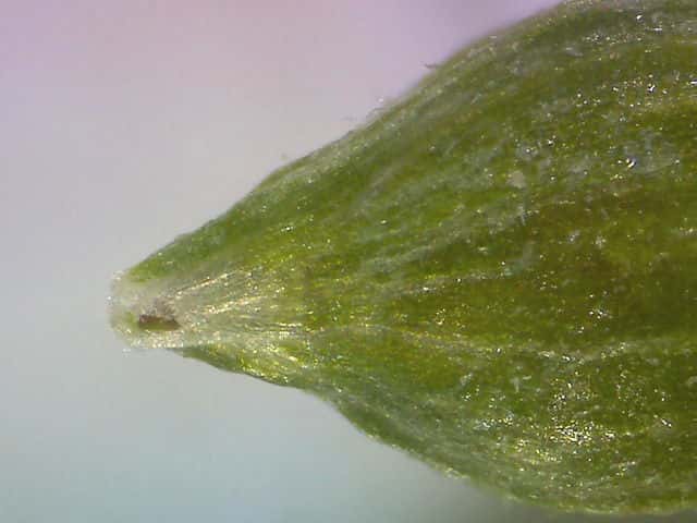 | ▼果胞の口部。 | ▼果実は長さ約1.5mm、付属体がつく。 | ▼苞は葉状で長い。 |
