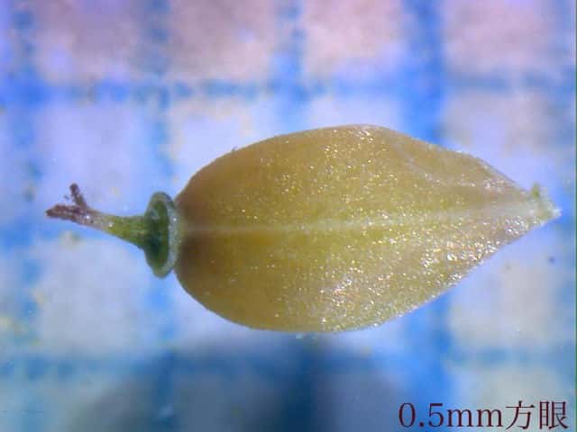 | ▼果胞は長さ約2mm。 | わずかに微毛がある。 | ▼果胞口部は2歯がある。 |