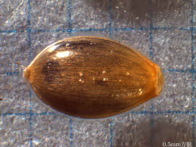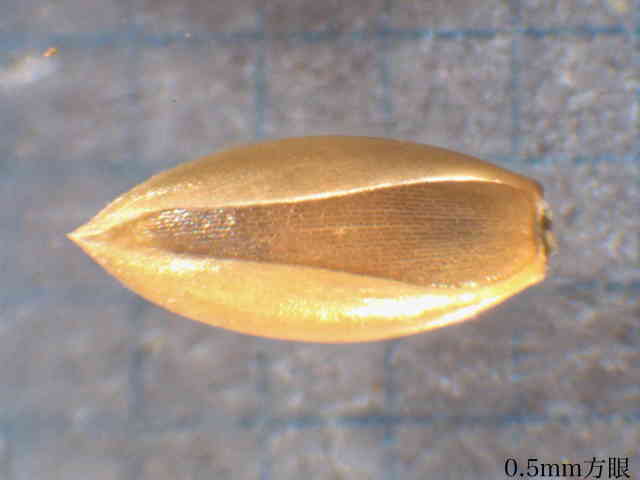 | ▼小穂は長さ約2.3mm、第1苞穎は1mm。 | ▼護穎は長さ約1.9mm、ガラス質。 | |