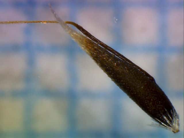 | ▼小花の芒は長さ約4mm。 | ▼芒は護穎の背から伸び、護穎の基部に白色の毛があり、上部にも毛がある。 | |