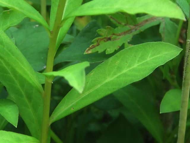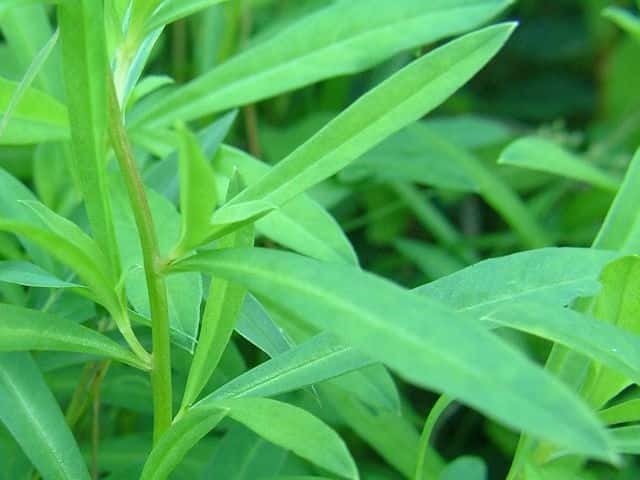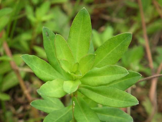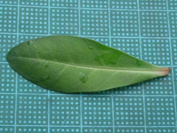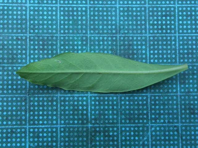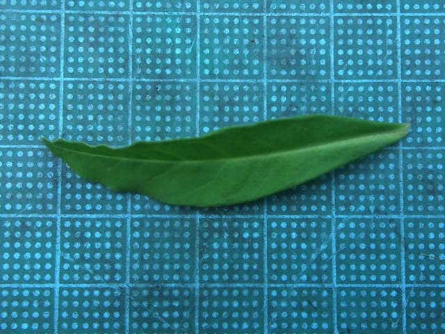 | ▼葉は細く、長さ約5.5cm。 | ||