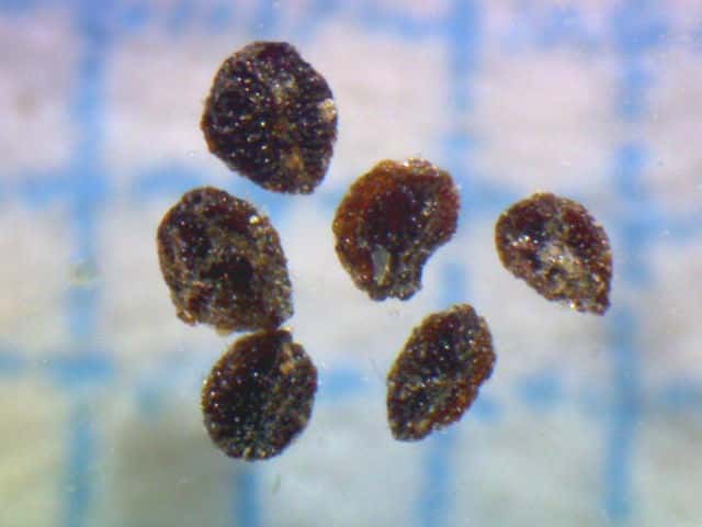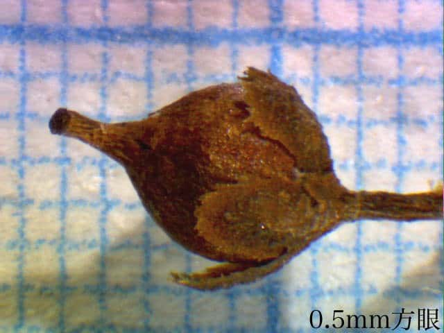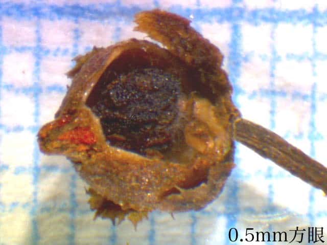| ▼球形の胎座にはめ込まれた種子。 | ▼種子は0.3〜0.5mm。 | |