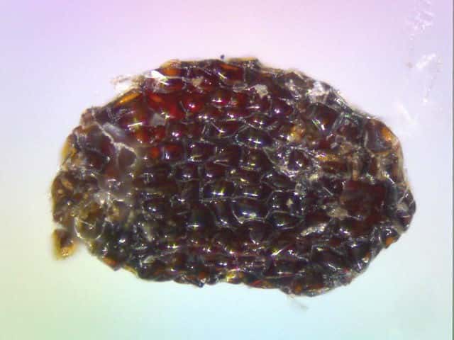 | ▼種子は円錐状。 | ▼種子の表面に格子状の模様がある。 | |