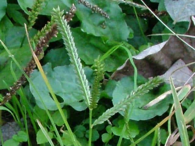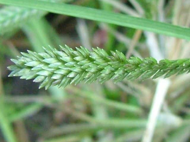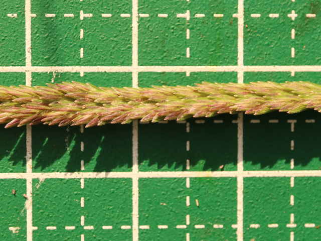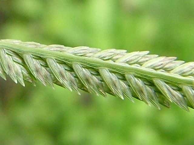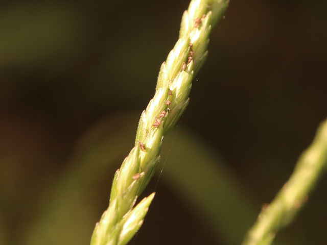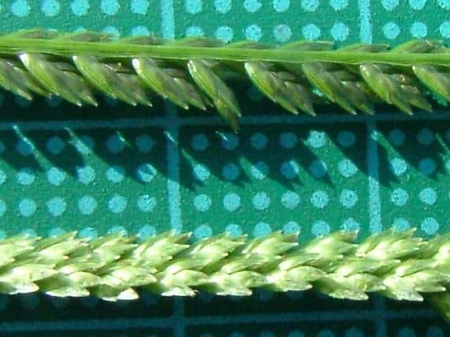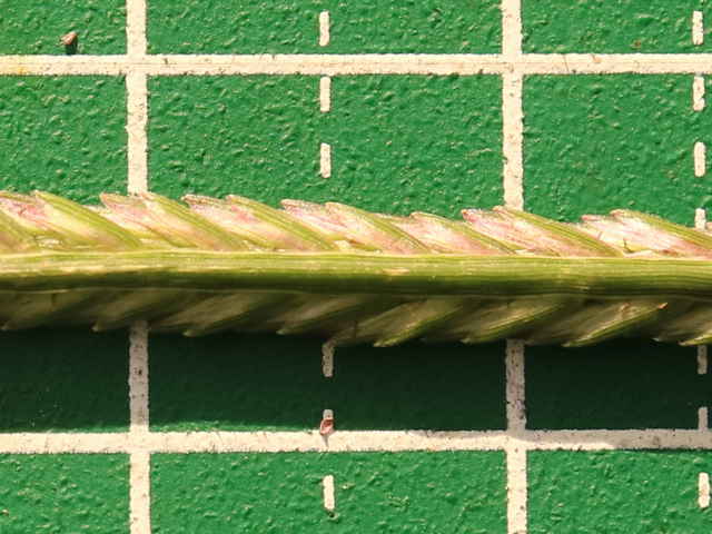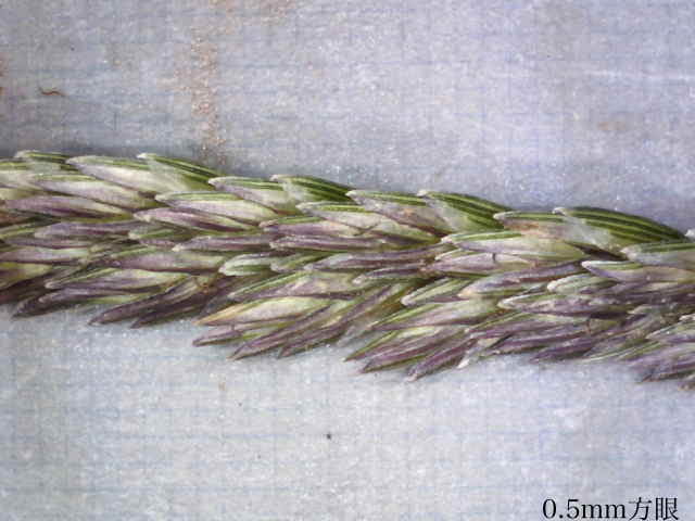 | ▼花軸の片側に小穂をつける。 | ▼小穂は2列に並んでいる。 | |