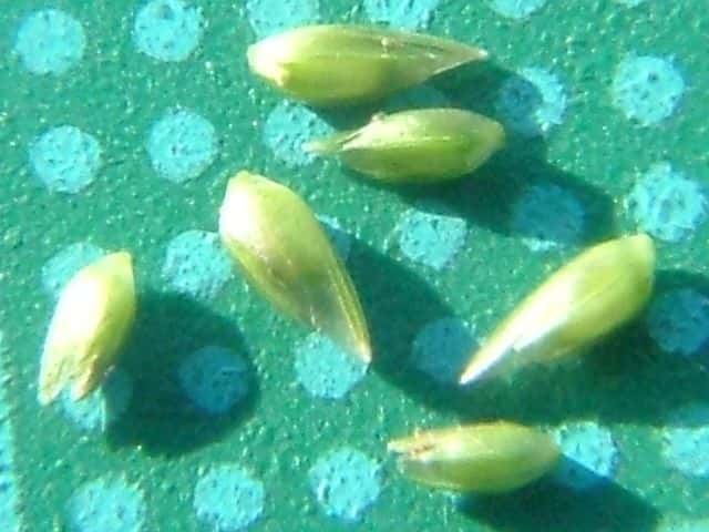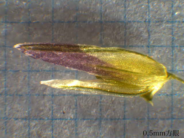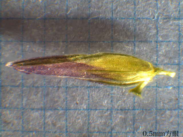 | ▼小穂を広げてみた。 | ▼小穂は長さ約5mm、6小花がある。 | ▼小花は長さ約3.5mm。 |