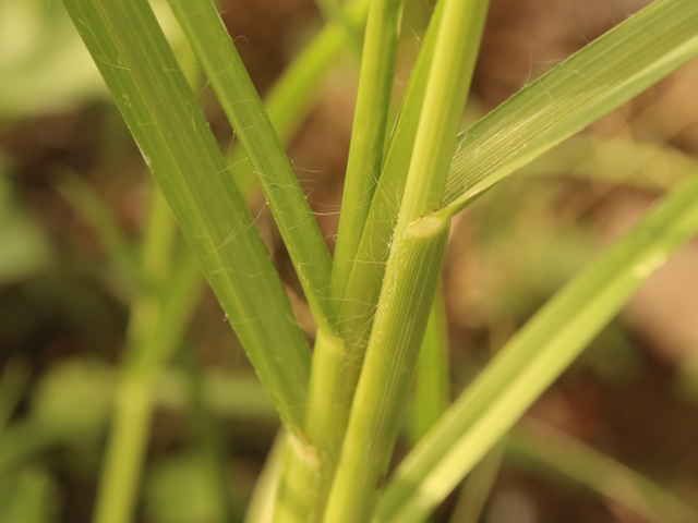| ▼小花の内穎を広げてみた。 | ▼葉の縁に長い軟毛がある。 | ▼踏まれて斜上している個体。 |