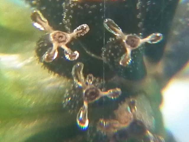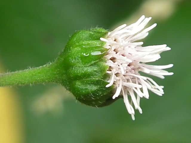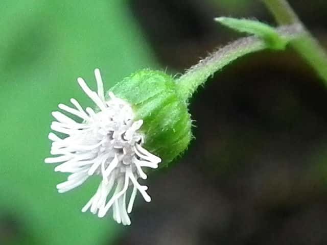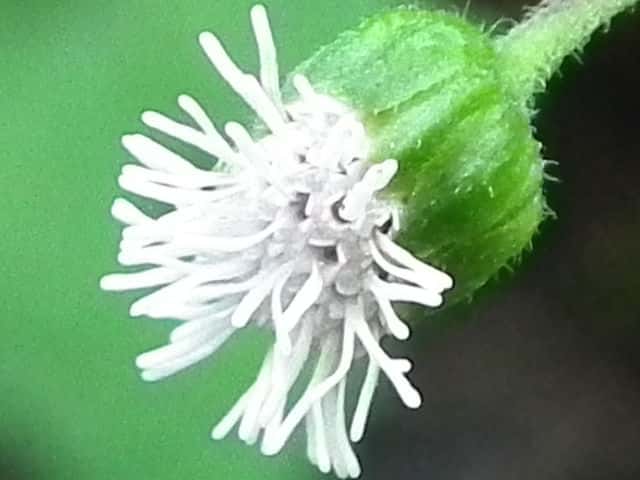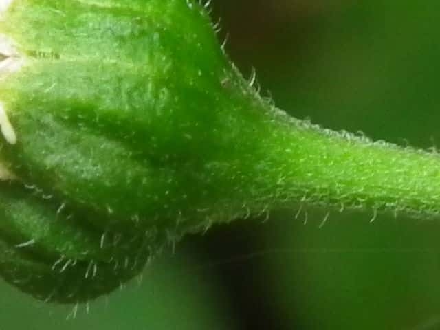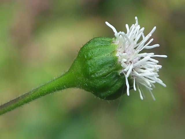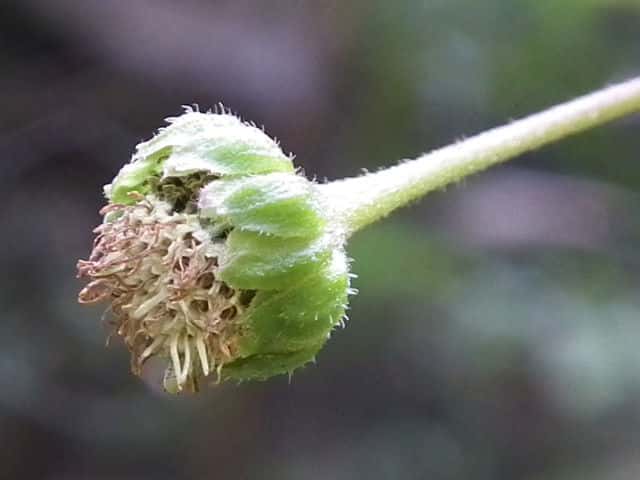 | ▼1個の筒状花。子房の上部に冠毛がある。 | ▼筒部に腺毛、上部に毛がある。 | |