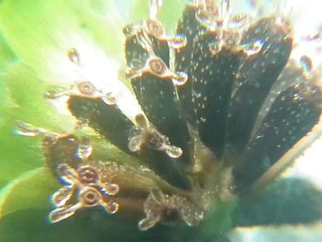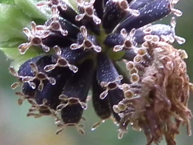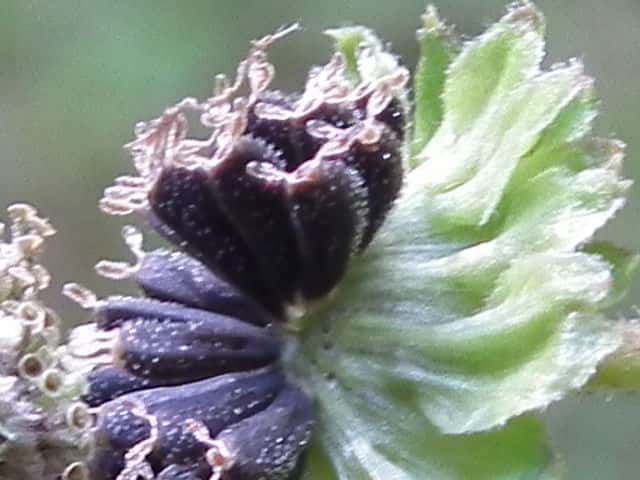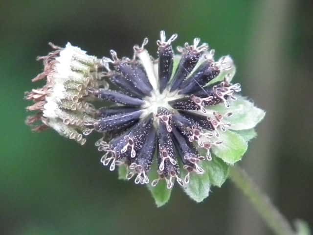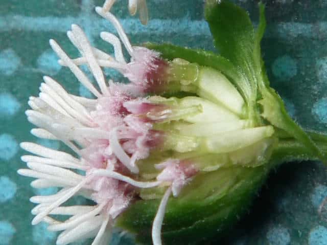 | ▼頭花は直径約7mm。 | ▼頭花の縦断面。 | |