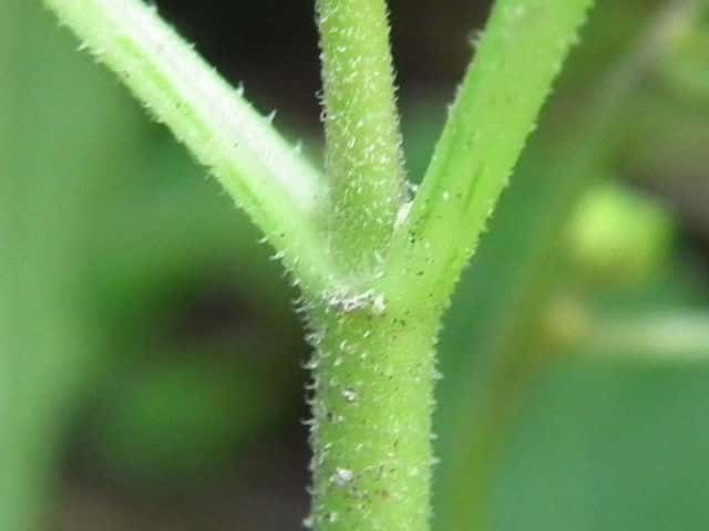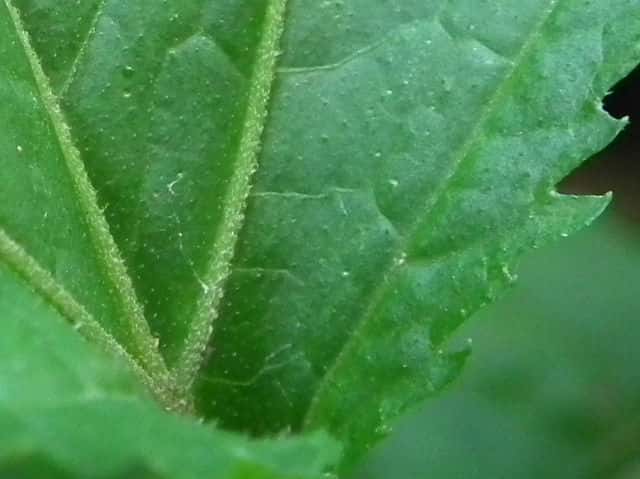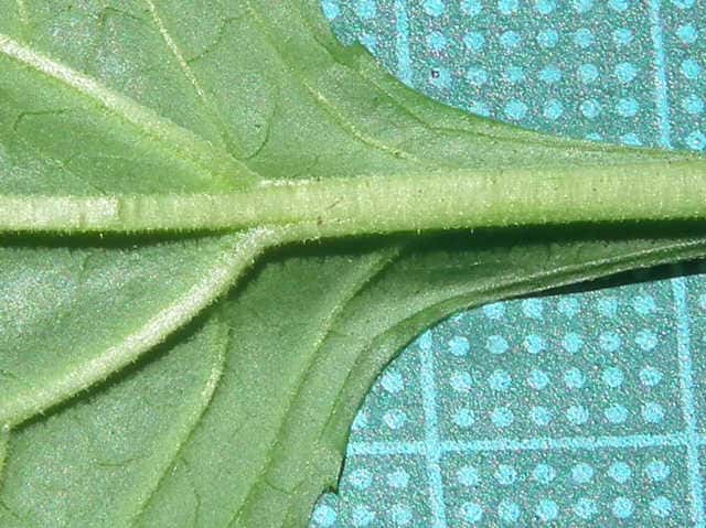 | ▼裏面脈上にも短毛がある。 | ▼茎や葉柄に短毛がある。 | |