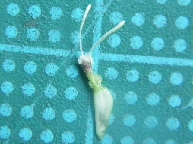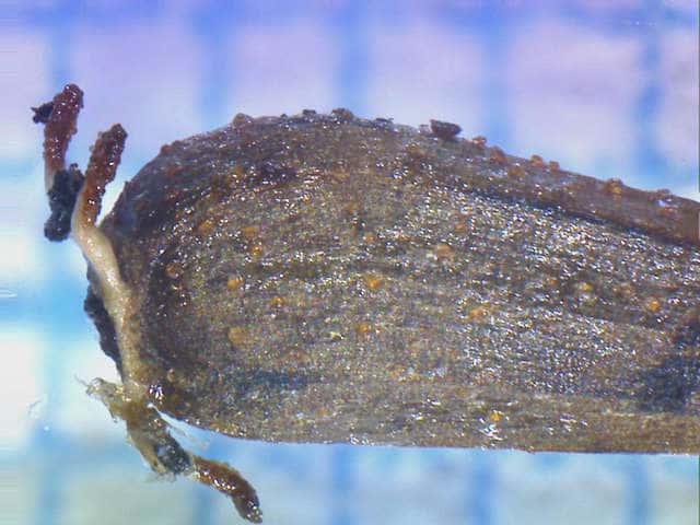 | ▼果実は長さ約3.5mm、表面は平滑。 | ▼表面は平滑で、腺点がある。 | |