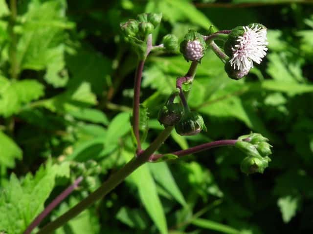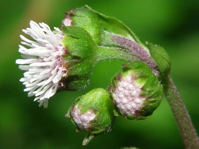 | ▼果実 | ▼総苞片は花のあと反り返る。 | ▼冠毛はこん棒状で、粘液を出す。 |