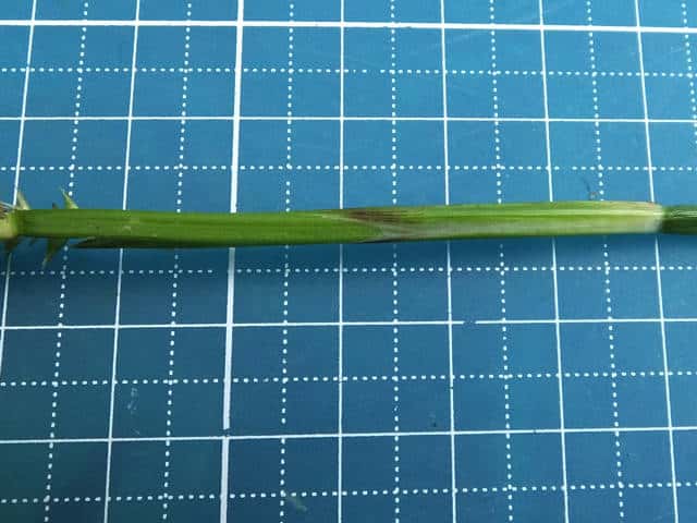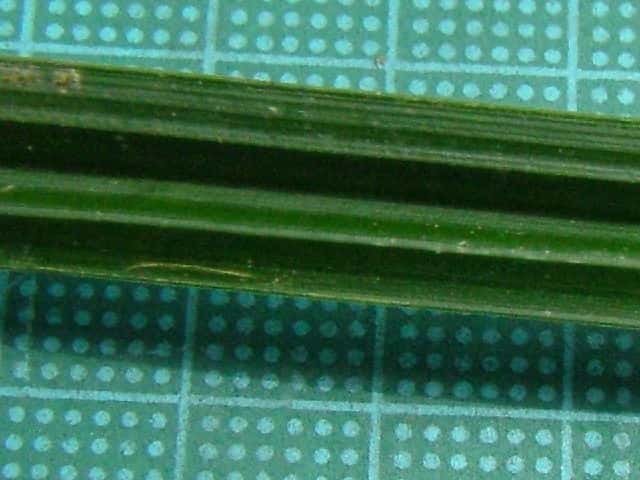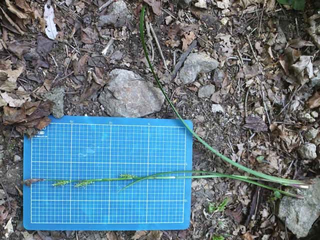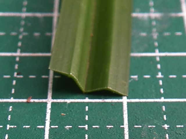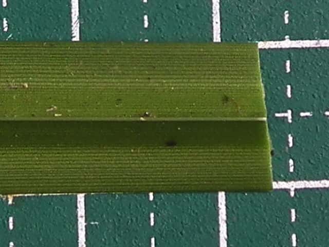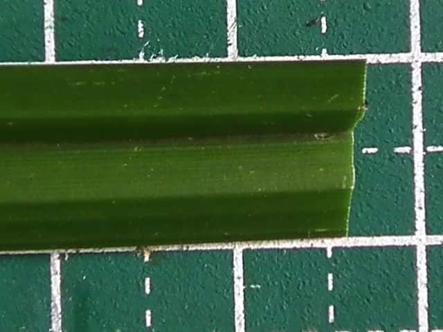 | ▼葉の断面はM字形、幅約1.1cm。 | ||