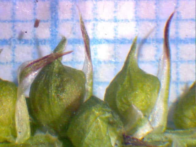 | ▼果胞と燐片。 | ▼果胞は長さ約2mm。 | |