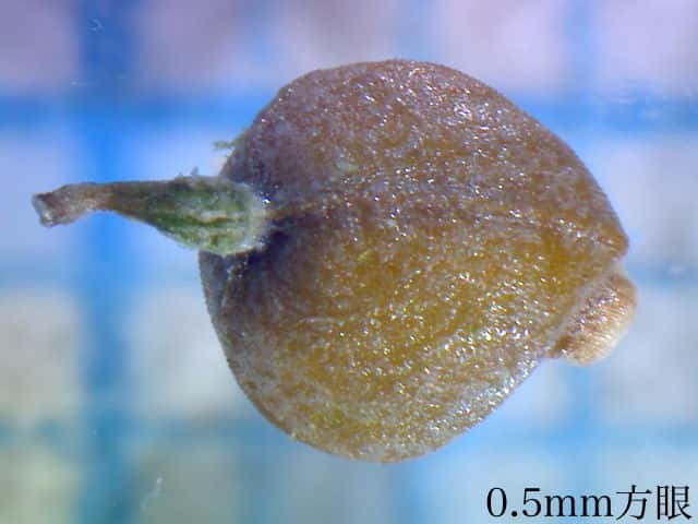 | ▼口部は2歯がある。 | ▼果実は長さ約1.3〜1.5mm。 | |