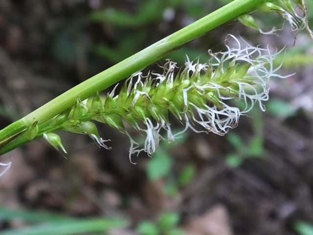 | ▼雄小穂は長さ約3cm。 | ▼雌小穂は長さ約3cm、長い柄がある。 | ▼柱頭は3岐する。 |