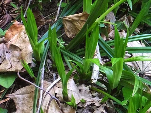 | ▼葉の幅は約1cm。 | ▼3脈が目立ち、断面がM字状。 | |