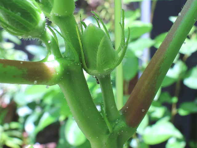 | ▼萼は筒状で1個、線形の副萼片が数個ある。 | ▼蕾は線形の副萼片が目立つ。 | |