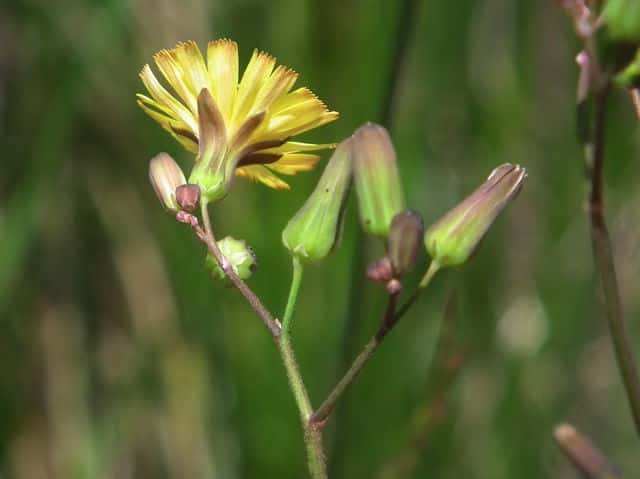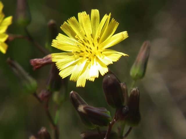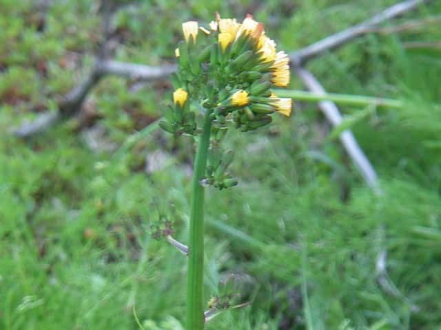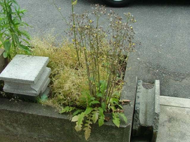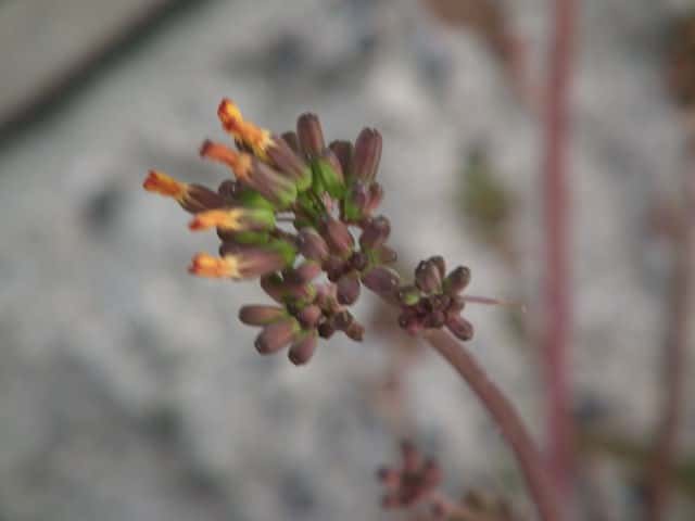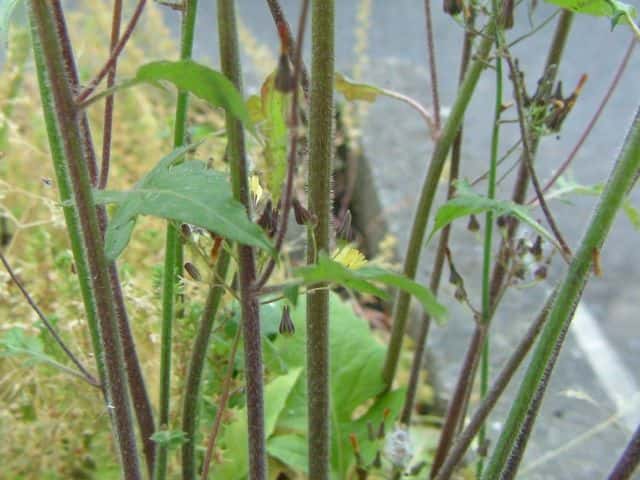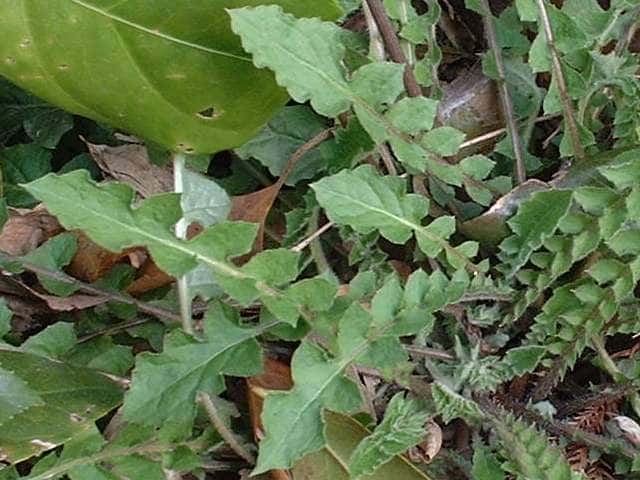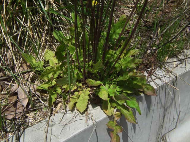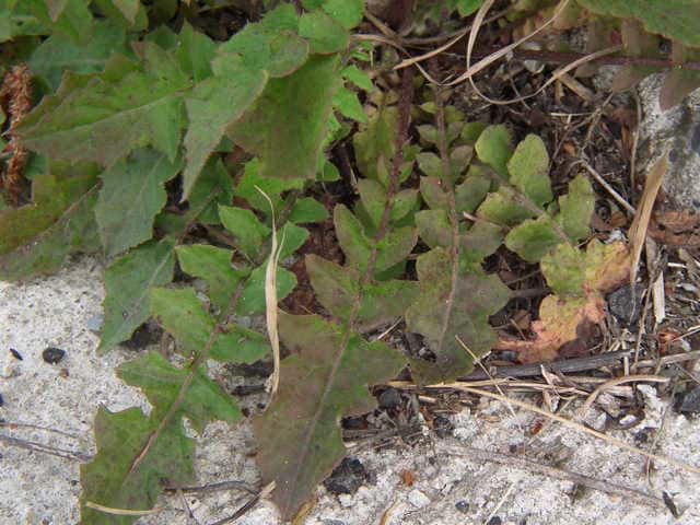 1〜越年草 日本全土の道端や公園、庭のすみなどによく生える。高さ0.2〜1m。ところによっては群生するが、独立して生えていることも多い。全体にやわらかく、細かい毛がある。茎や葉を切ると白い乳液がでる。根生葉はロゼット状につき、長さ8〜25cm、幅1.7〜6cmで、頭大羽状に深裂する。頂裂片は三角状卵形で先は丸い。下部の葉は根生葉に比べ、先がとがる。茎の上部の葉は少なく、小型で少し褐紫色を帯びることが多い。茎の先に直径7〜8mmの黄色の頭花を散房状に多数つける。花期はふつう5〜10月だが、南の地方では1年中咲いているところもある。総苞は長さ4〜5mmの円筒形。内片は1列に並び、外片はごく小さい。花のあと総苞の基部はふくらむ。総苞片はそう果が熟すとそり返る。冠毛は白色。花期は5〜10月。(野に咲く花) 学名は、Youngia japonica キク科オニタビラコ属 最近ではオニタビラコを、 アカオニタビラコ(Y. japonica subsp. elstonii)----花茎は通常1本。茎葉が数枚、大きい。 花茎は紫色を帯びる。下部を中心に毛が多い。 ロゼットは柔らかな緑色で赤い部分がある。 頭花は径7〜10mm アオに比べてやや自然度の高い環境に多く見られる。 アオオニタビラコ(Y. japonica subsp. japonica)----花茎が通常多数出る。茎葉はつかない。 花茎は紫色を帯びない。 ロゼットは青っぽい緑色で光沢があり赤い部分がない。 頭花は8〜13mm。 路傍の植え込みなど,アカに比べて攪乱されたところに多く見られる。 に区別される。 似た花でヤブタビラコ属のヤブタビラコやコオニタビラコの果実には冠毛がないことで区別できる。 |