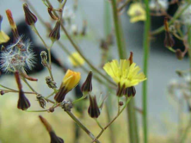 | ▼冠毛には上向きの刺がある。 | ▼花は直径約1.2cm。 | |
