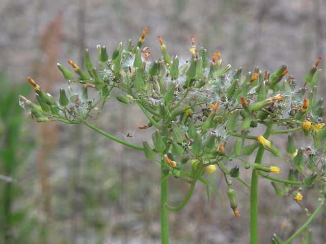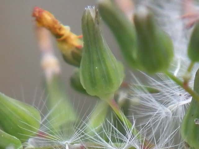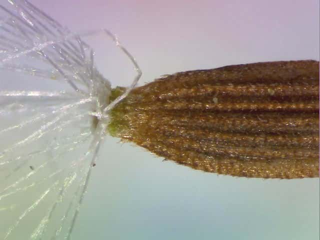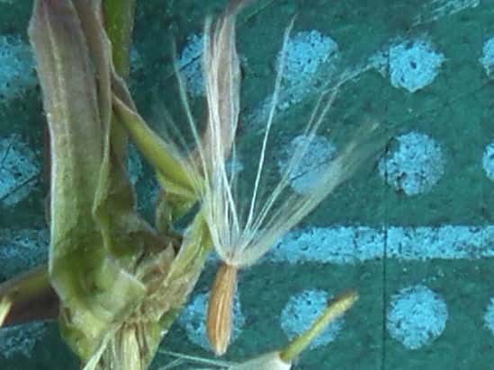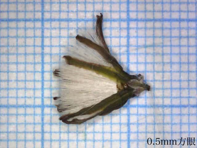 | ▼冠毛は長さ約3mm。 | ▼総苞に包まれた果実。 | |