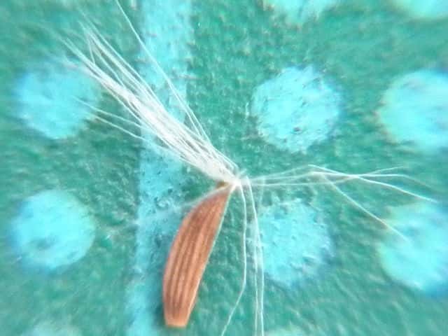 | ▼果実は長さ約2mm、縦皺がある。 | ▼表面に上向きの短毛がある。 | |