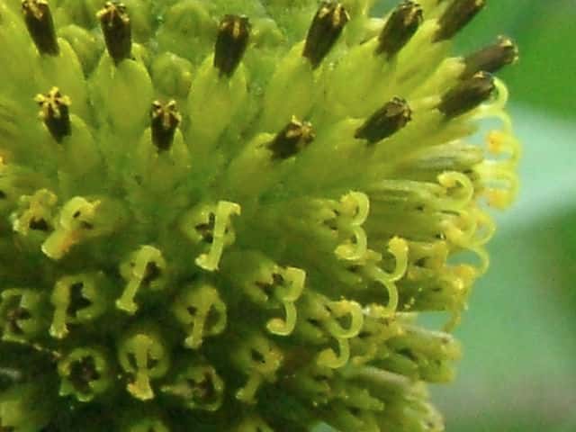 | ▼筒状花は緑黄色。 | ▼蕾 | |
