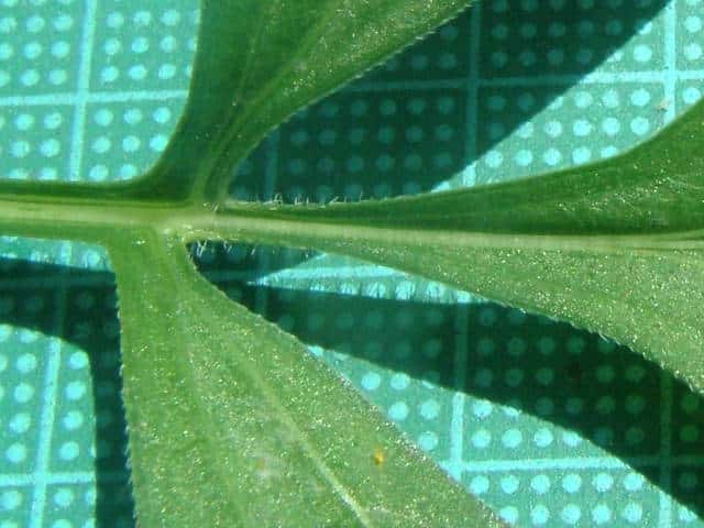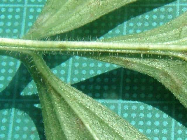 | ▼葉の裏面に毛がある。 | ▼茎は無毛。 | |