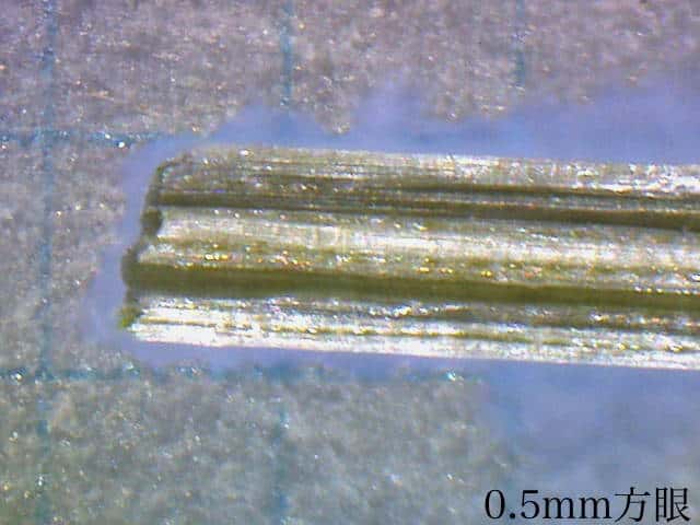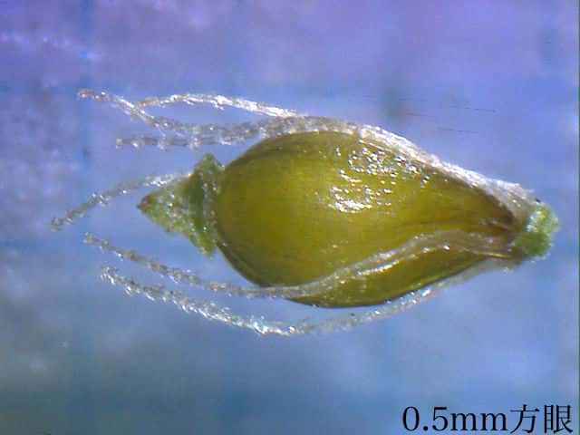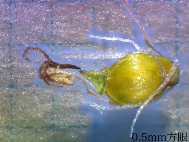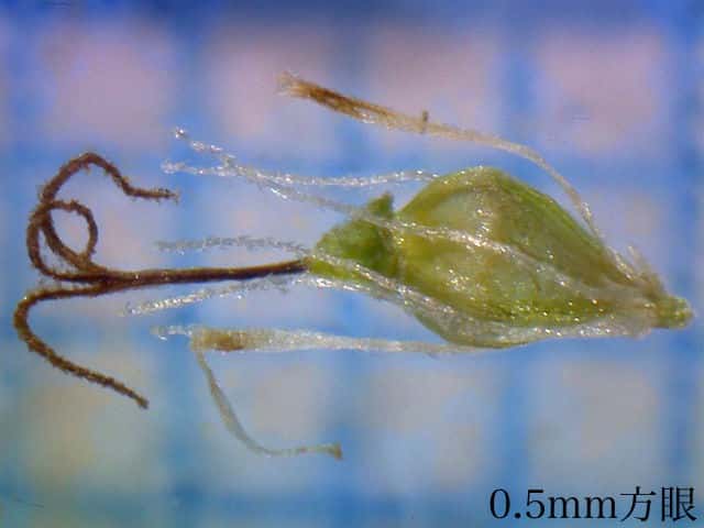 | ▼果実は長さ約0.9mm。 | ▼花茎は直径約0.5mm。 | ▼花茎の長さは約10cm。 |