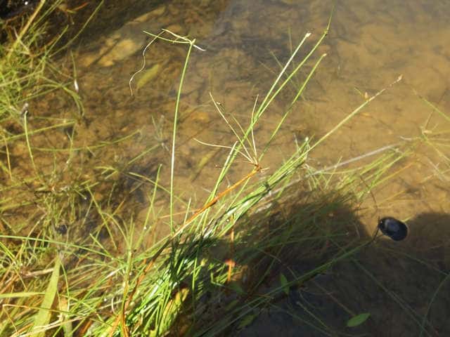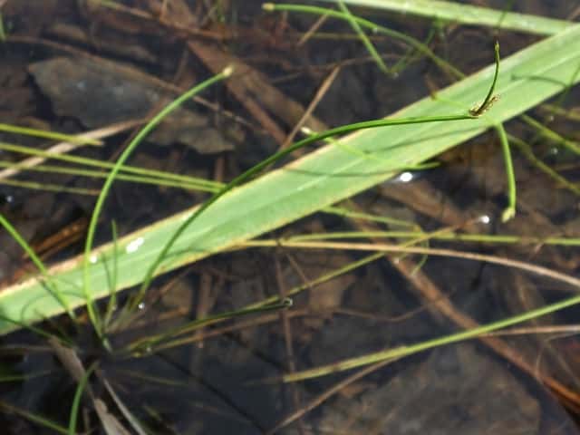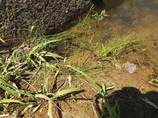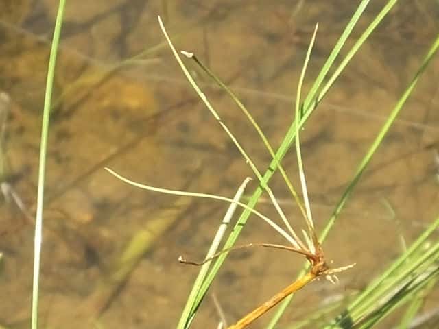 | ▼花茎は長さ20〜23cm。 | ▼茎は径約0.4mm。 | ▼池畔に生えている。 |