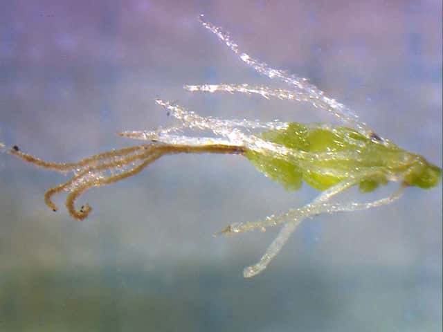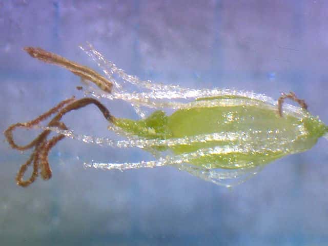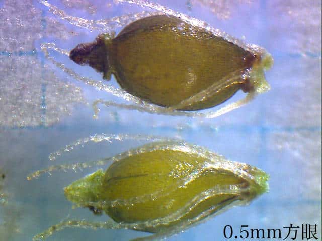 | ▼果実は長さ約0.9mm。 | ▼クローン株を生じる。 | |