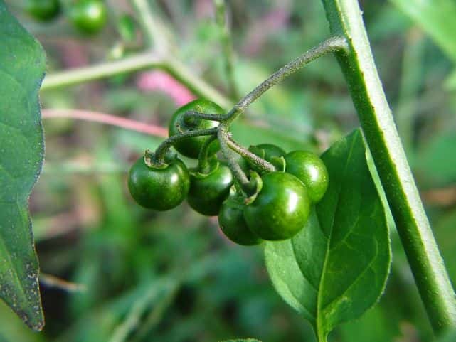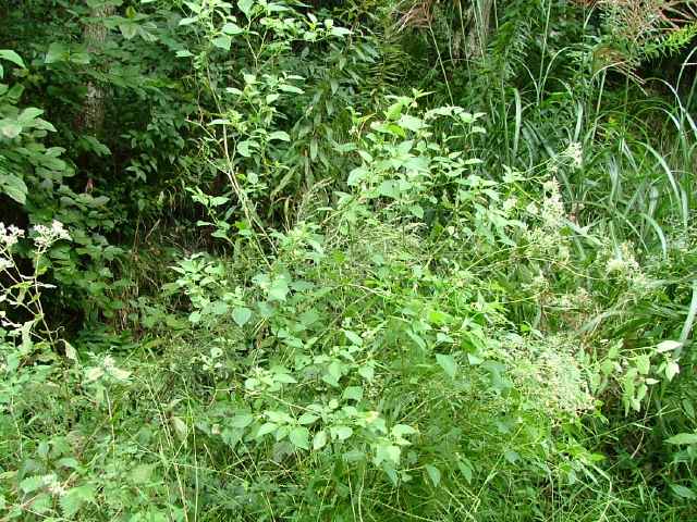 | 花の色はアメリカイヌホオズキを思わせるが、花が7個程度と多い。散状花序から外れて花柄がつく。 | ||