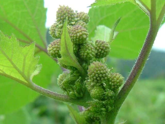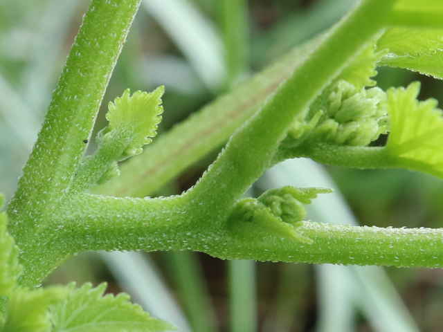 | ▼雄花 | ▼上部に雄花、下部に雌花がつく。 | |