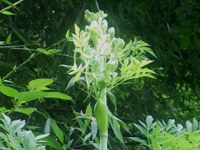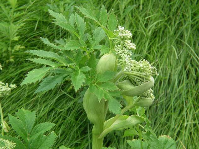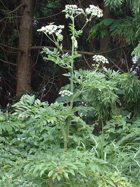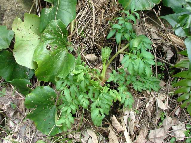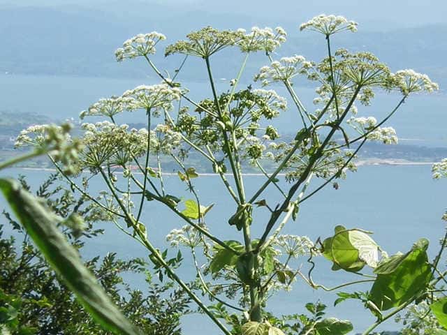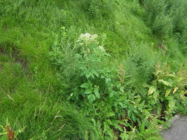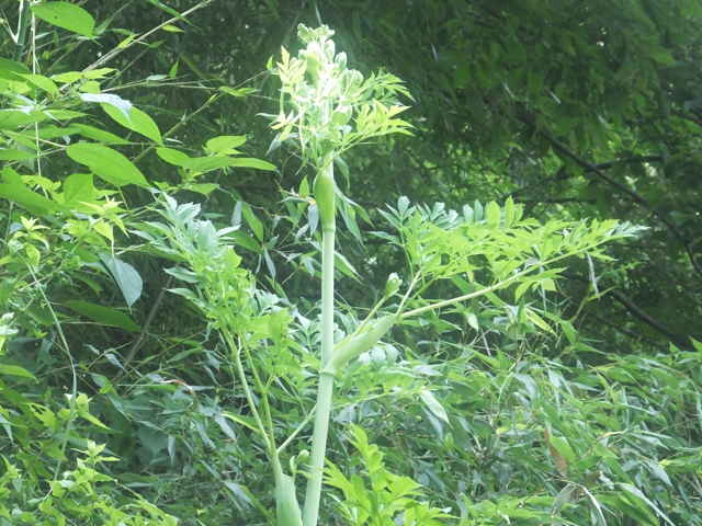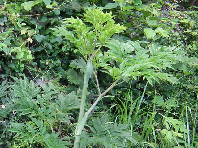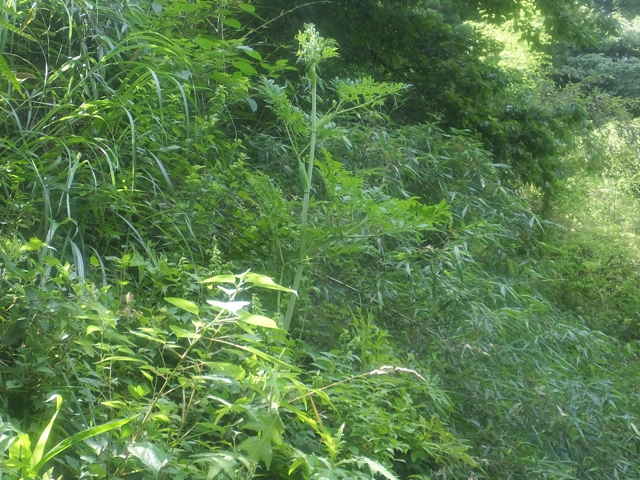 | 多年草 本州〜九州の川岸や林縁に生える非常に大型の植物。茎は太く中空で高さ1〜3m、上部で枝分かれする。葉は大きく2〜3回3出羽状複葉。小葉は長楕円形で、粗い鋸歯があり、先端は 鋭く尖る。裂片の基部は羽軸に流れてつく。葉柄は袋状に大きく膨らむ。花序は大型の複散形花序で、白い小さな花を多数つける。近縁のサンインヨロイグサに似るが、花期が早く、さらに大型で。小葉の数が多く、細長く、鋸歯が粗くて鋭いこと、小花序の数が少なく30個以下であることなどで区別できる。別名オオシシウド。花期は7〜8月。(広島の山野草) 学名は、Angelica dahurica セリ科シシウド属 シシウドでは分果の背溝下の油管が1〜4個だがヨロイグサとエゾノヨロイグサ群では1〜2個、ヨロイグサの花序は数個の線形被針形の小総苞を持つがシシウドとエゾノヨロイグサ群では小総苞を欠くかまたは1~2個、ヨロイグサでは葉の頂裂片が2~8cm と小さいなどといった特徴によって区別される(山崎 1989,Ohba 1999).(四国産ヨロイグサの標本を見いだす) |