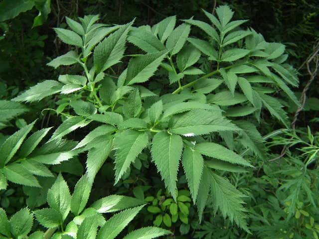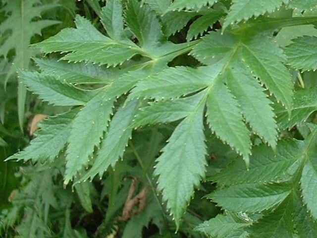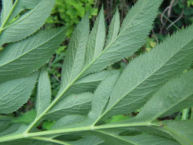 | ▼小葉は先端が尖り、鋭い鋸歯がある。 | ||