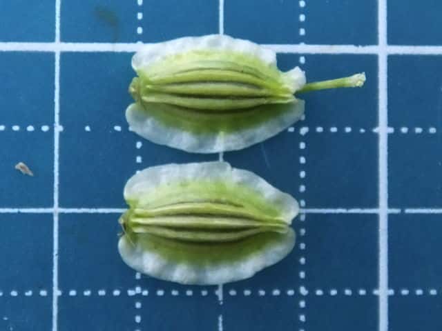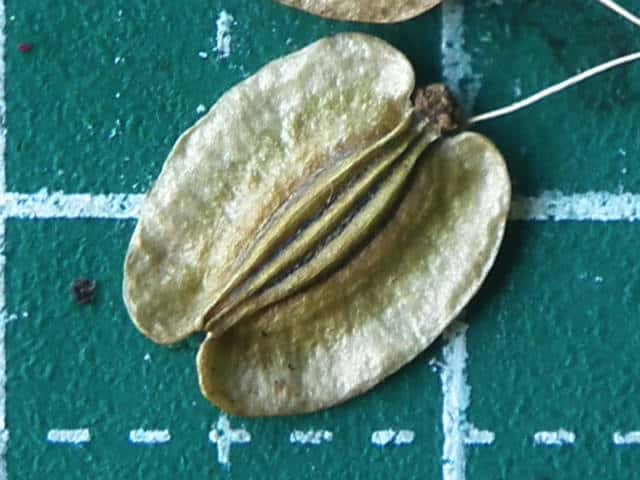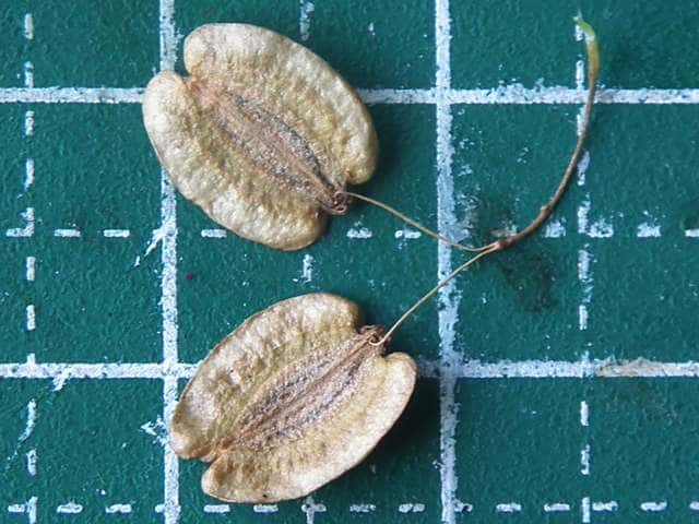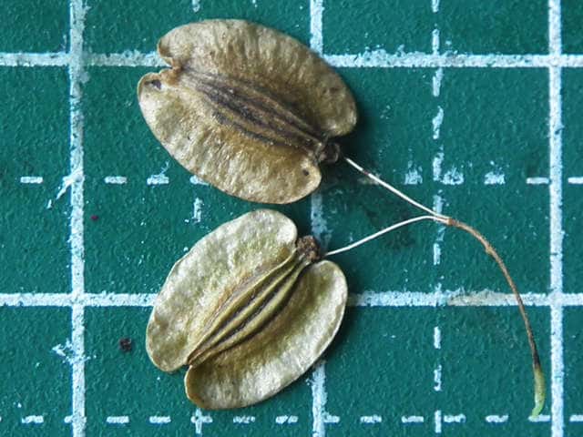 | ▼果実は長さ約8mm。 | ▼果実は長さ約9mm。 | ▼合わさった分果を分けた。 |