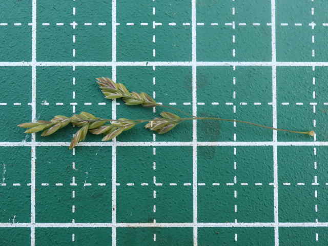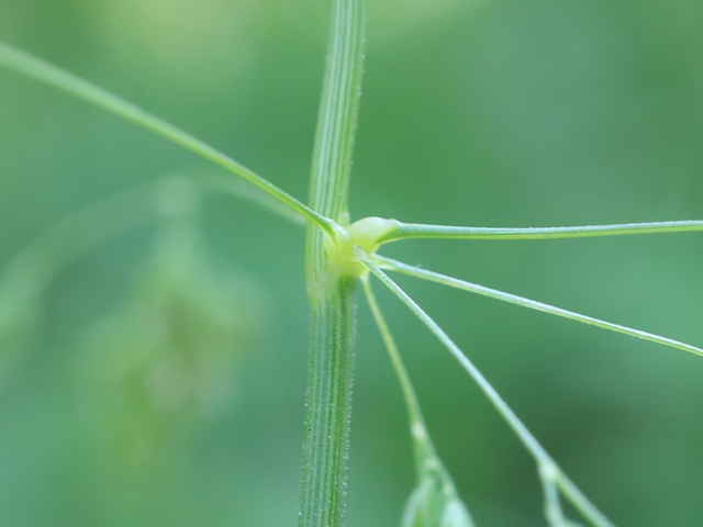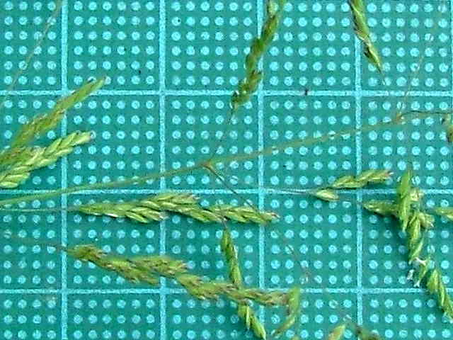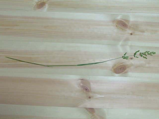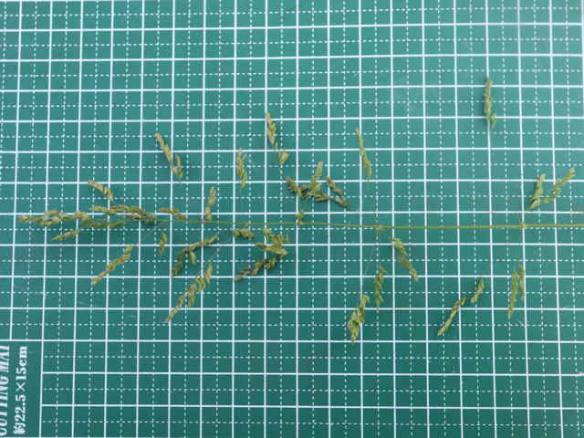 | ▼4個の枝を半輪生している。 | ▼3小花の小穂、長さ約3mm。 | ▼2小花の小穂。 |